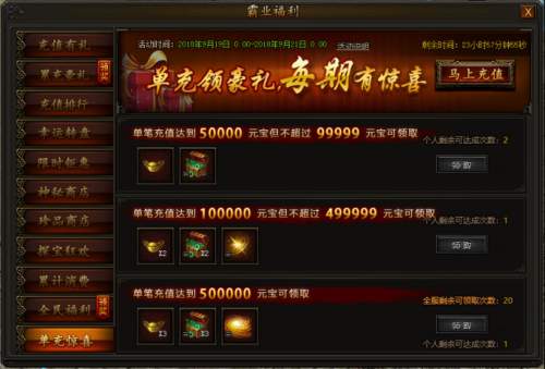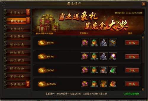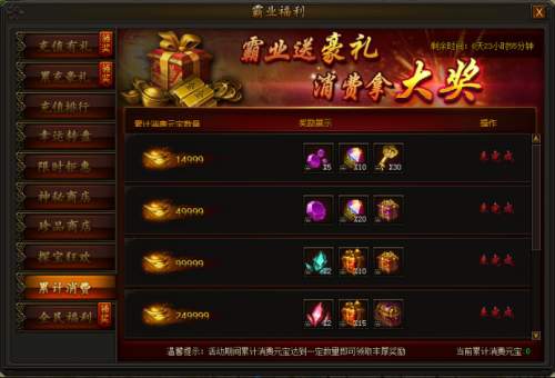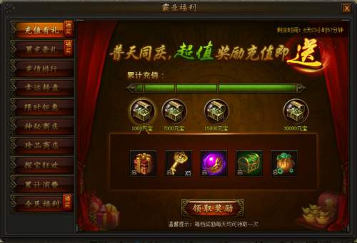 花费一定数量元宝还可购买超值礼包,每个角色每种礼包每天只能领取一次!