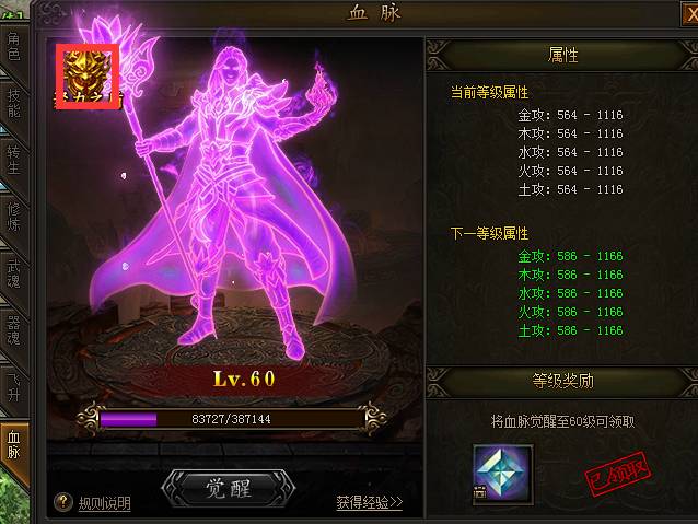 a. 系统开启:开服120天及以上,且血脉等级达到50级,可从人物血脉界面左上角进入;
